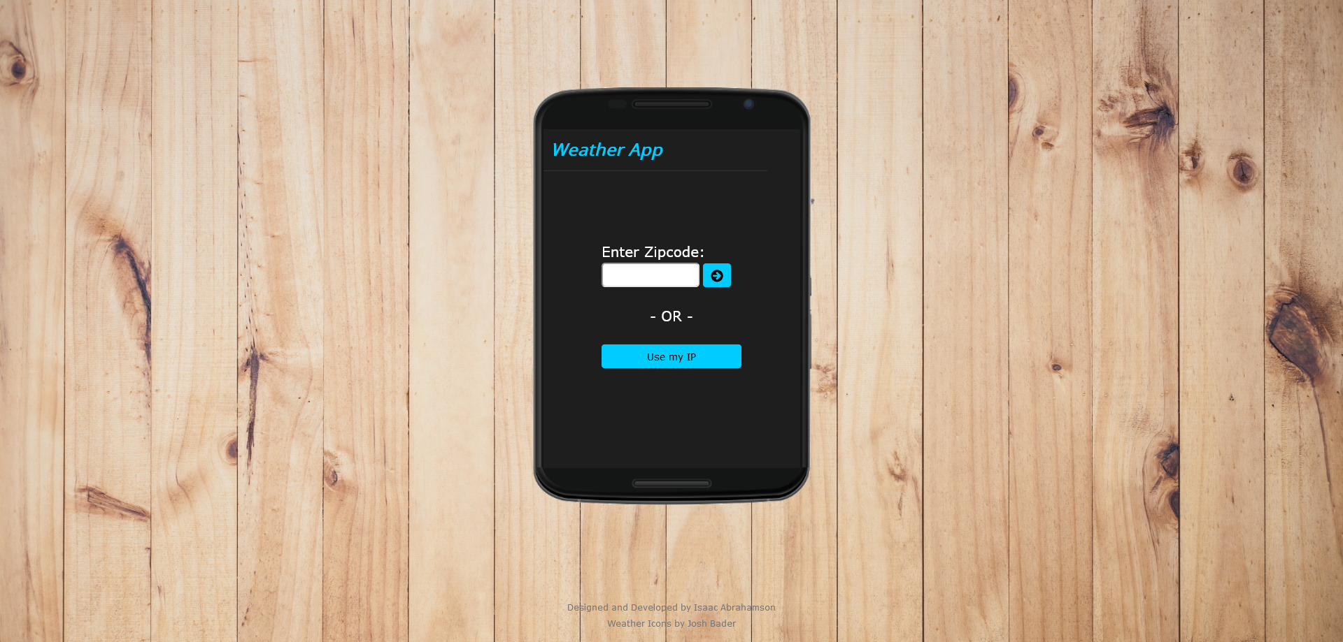 This website emulates a smartphone weather app. I used the OpenWeatherMap API to get the weather data. The animated icons were designed by Josh Bader.